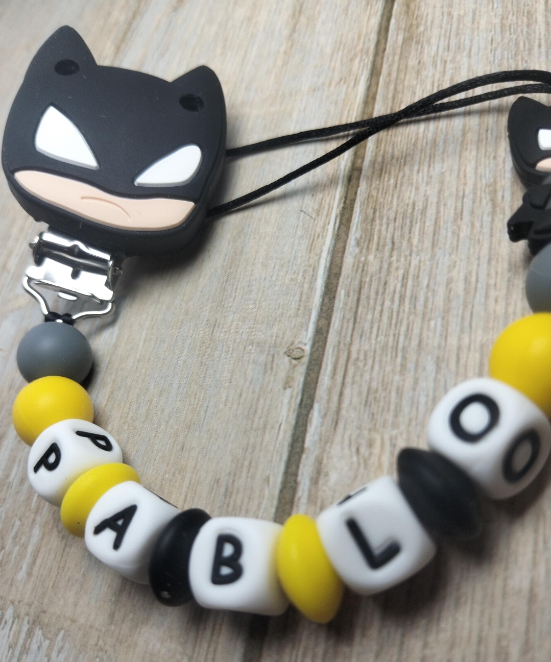 Chupeteros personalizados de silicona Libres de BPA Coméntanos que figura quieres, los colores y el nombre. Entrega en 24/48h