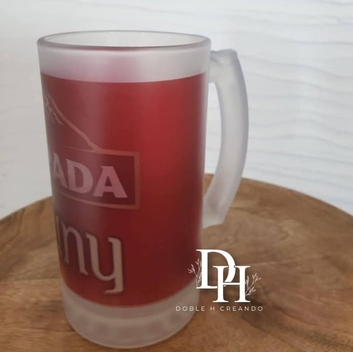 Jarra de cerveza opaca de cristal esmerilado con fotos,frases,paisajes,nombres... Es un regalo ideal para cualquier amante de la cerveza, y un detalle perfecto para cualquier ocasión. Jarra de cerveza estampada directamente en el cristal, por lo que la imagen tendrá un acabado de alta calidad y muy resistente. ¡Sorprende con un regalazo único y especial! Jarra de cerveza opaca de cristal esmerilado, personalizada con foto o el diseño o frase que más te guste. Ideal para disfrutar de una cerveza bien fresquita en cualquier época del año. Características: Jarra de cerveza de cristal opaco y de la mejor calidad. Capacidad: 500ml Medidas: 8 cm de diámetro x 15 cm de alto. Grosor de 4mm.