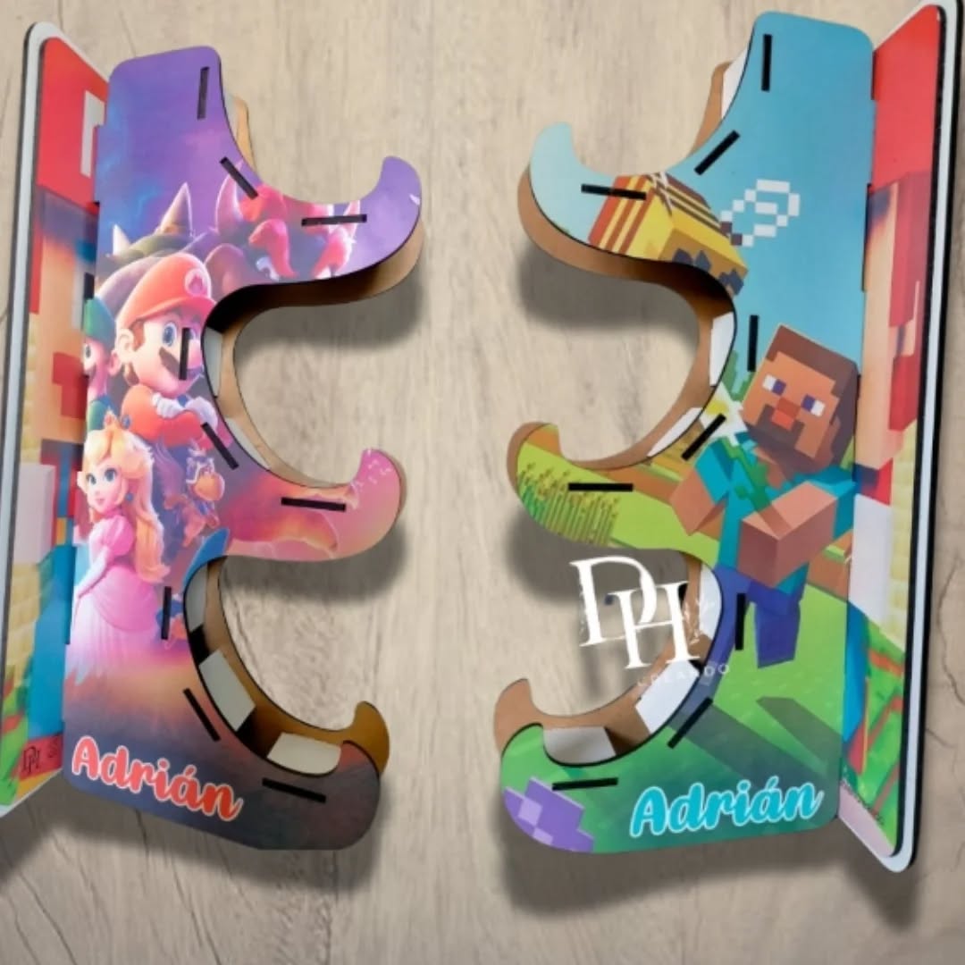 Soporte personalizado para mando de PS5, Nintendo Switch y Xbox y auriculares, regalo para esos gamers molones! 100% personalizado, creado en madera, diseñado solo para ti. Diferentes tamaños 1, 2 o 3 mandos
