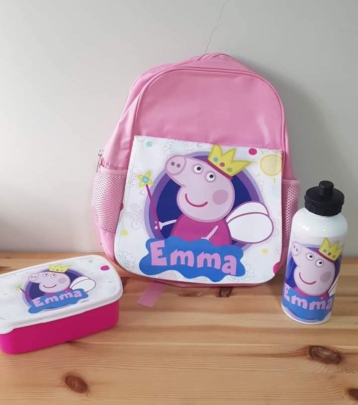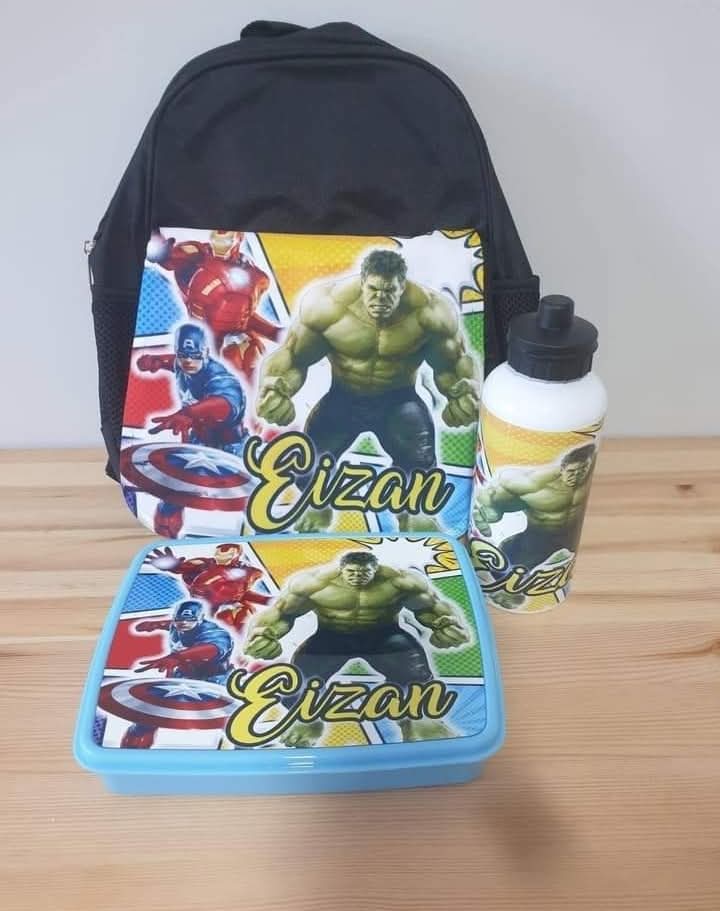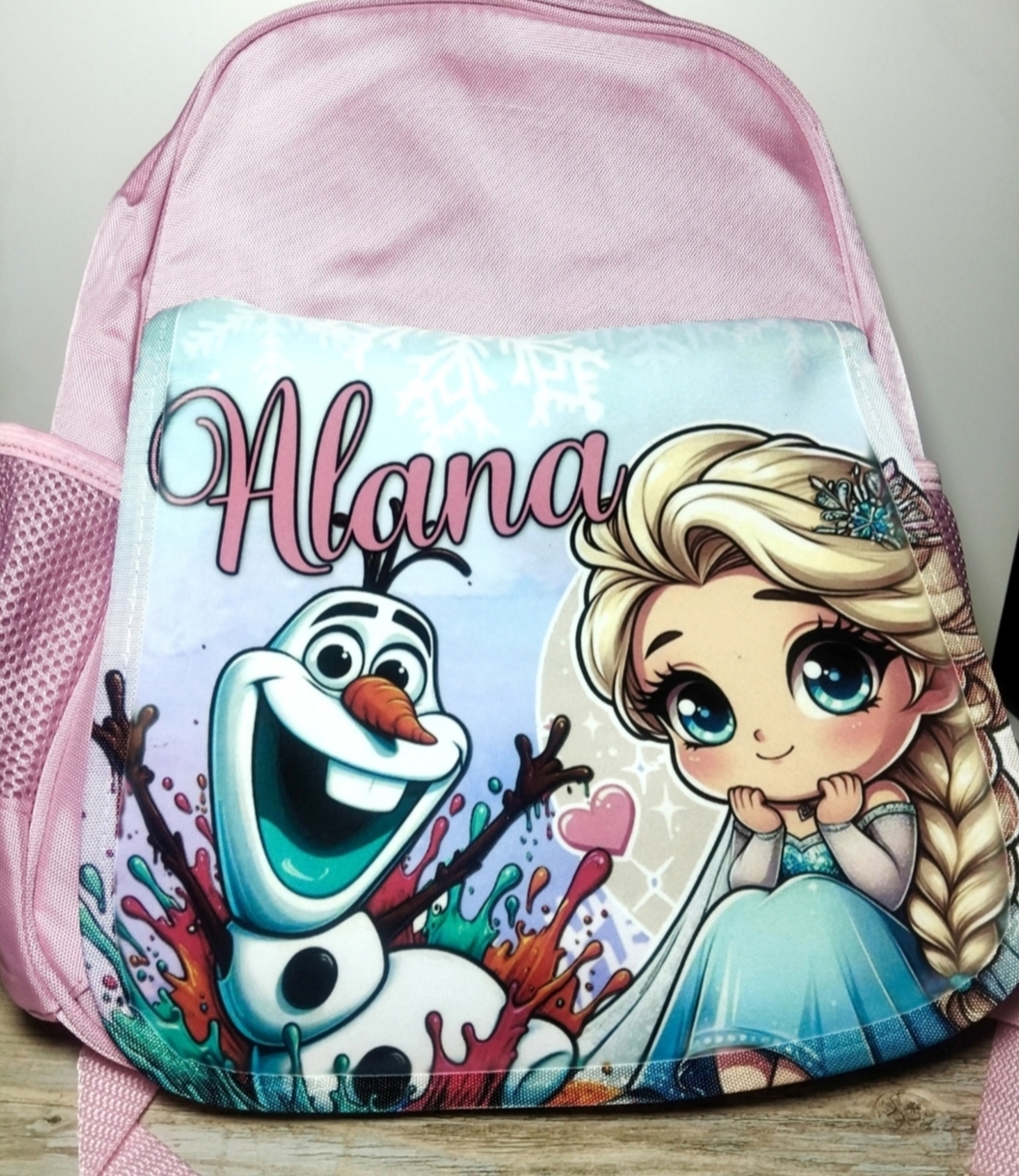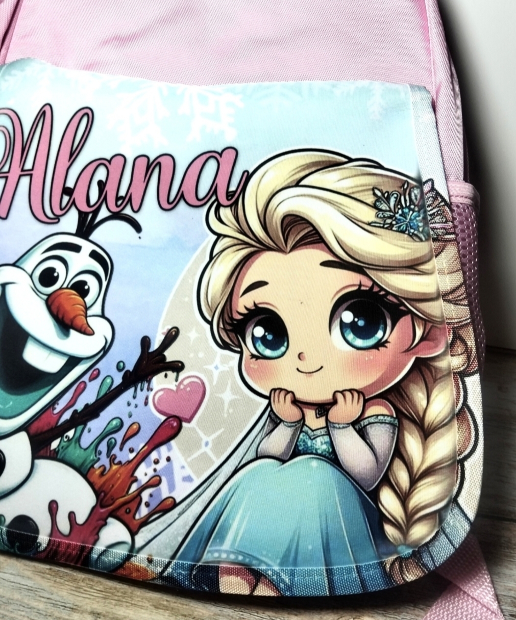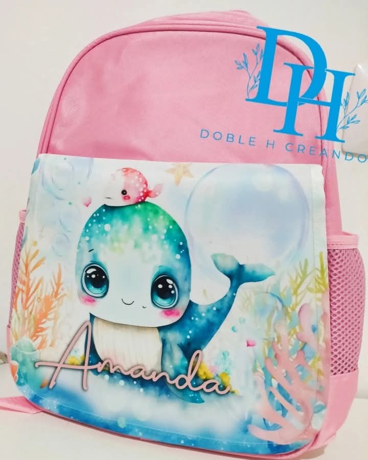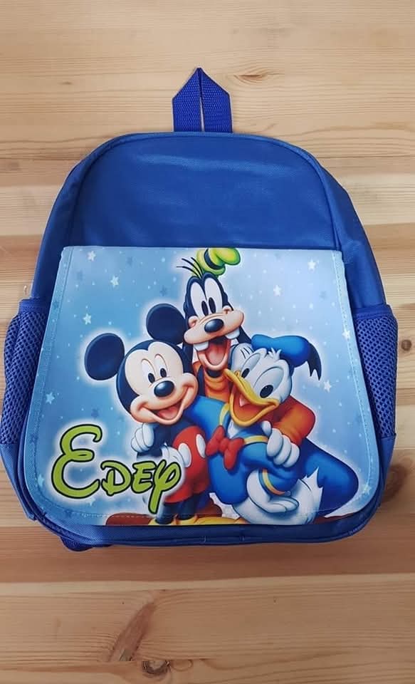 Material Loneta Oxford. Solapa personalizable fabricada en poliéster. Tiene 2 bolsillos laterales con rejilla para poder colocar botellas. Bolsillo en la parte frontal debajo la solapa. Medidas: 28 x 33 x 9 cm. Área personalizable 25 x 23 cm. Ideal hasta los 5 años