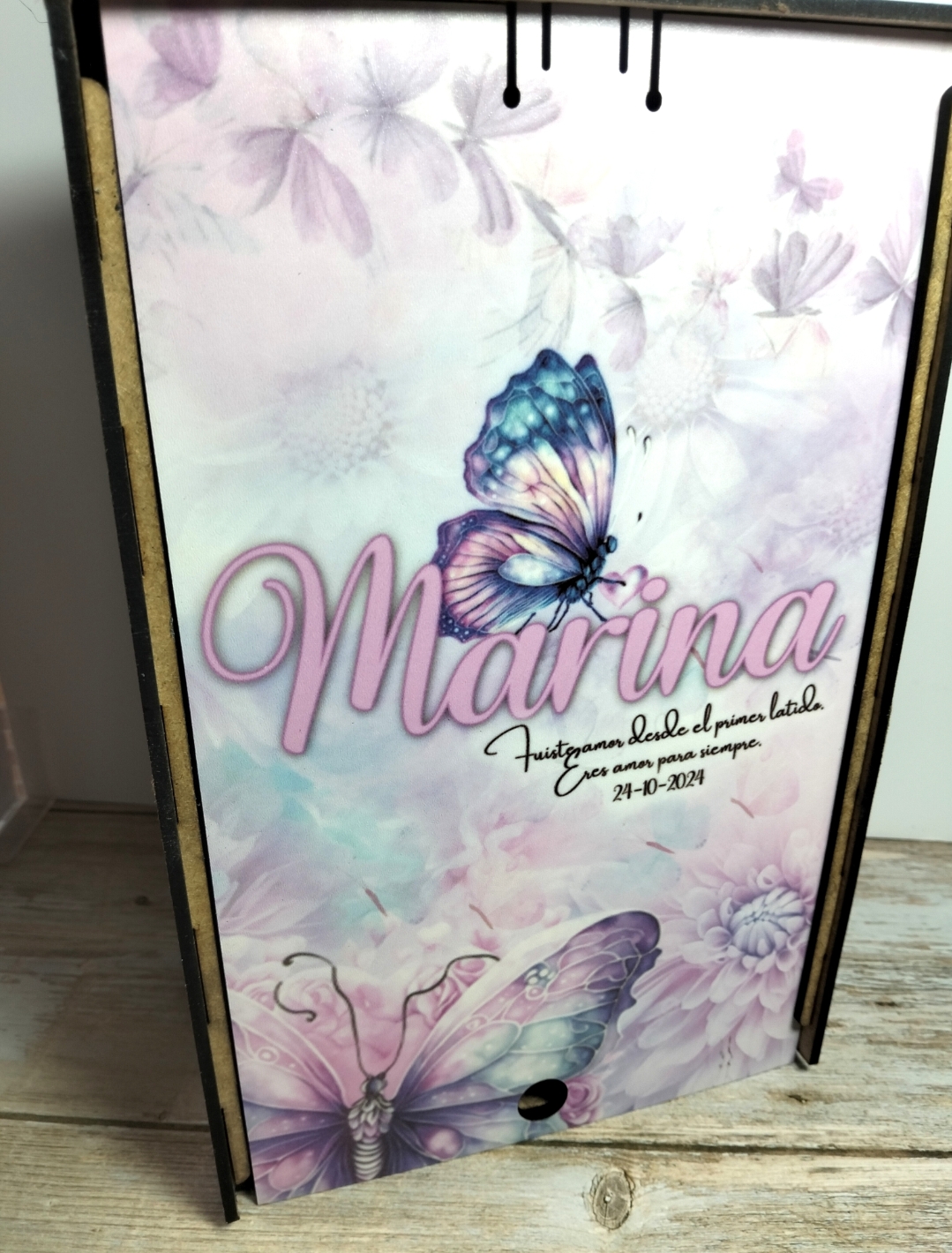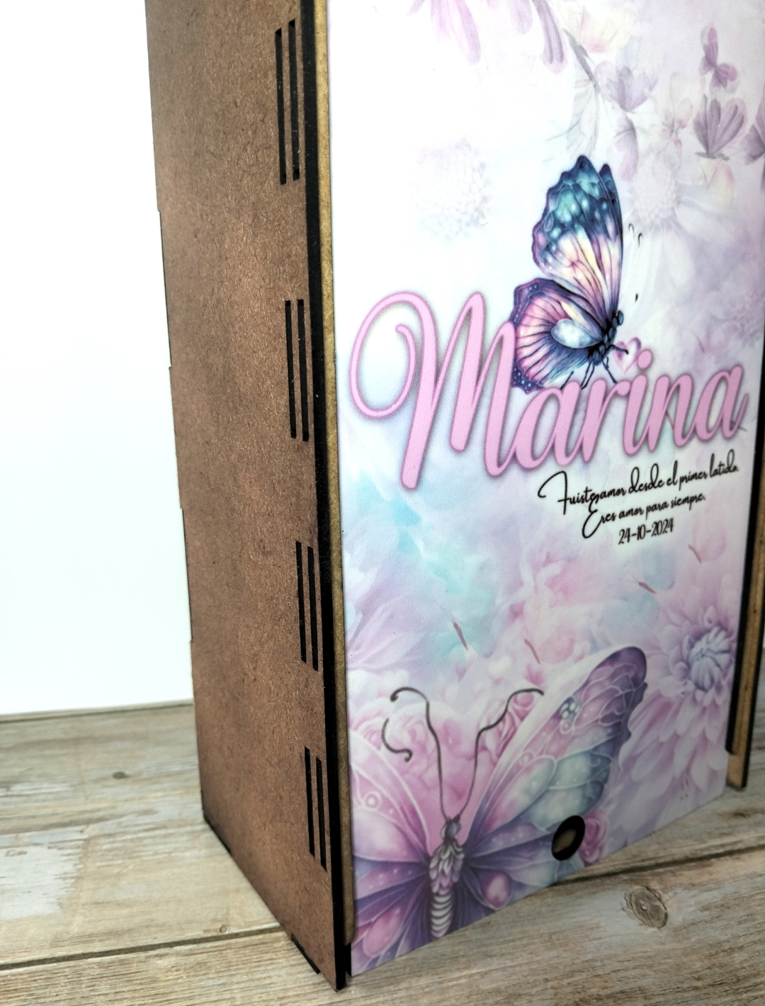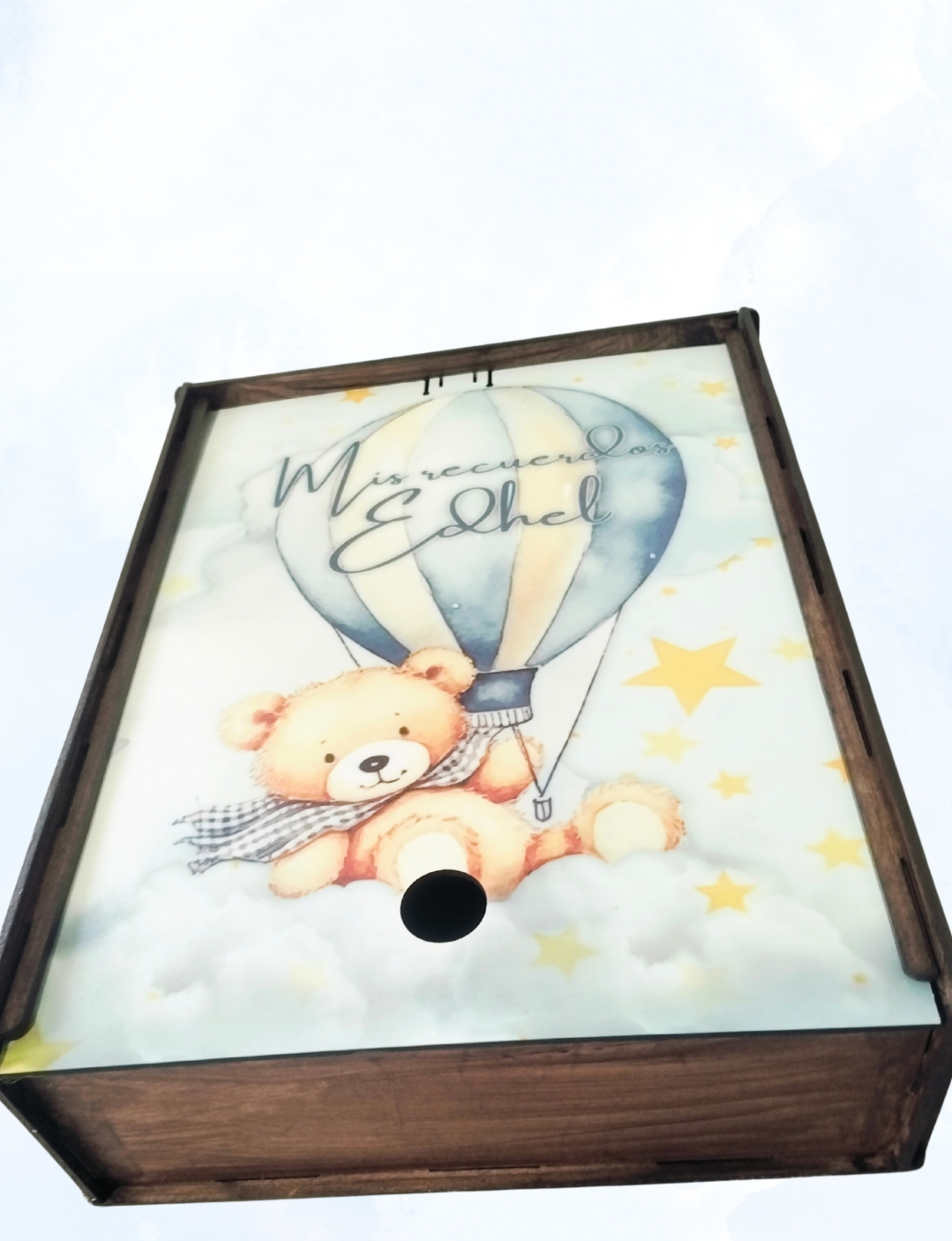 Caja de madera 100% creada por Doble H Creando, con tapa deslizable. El diseño va estampado en la madera, 100% personalizable 37cm de largo 25cm de ancho 12 centímetros de alto